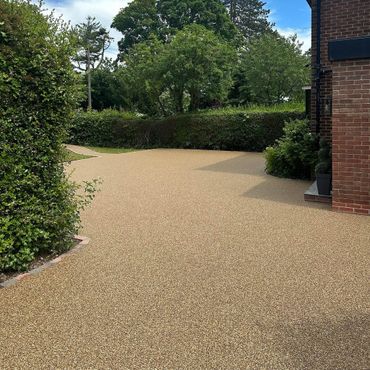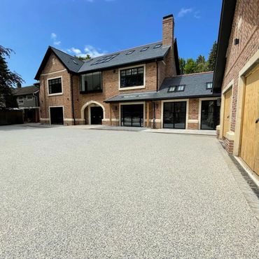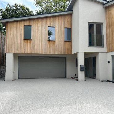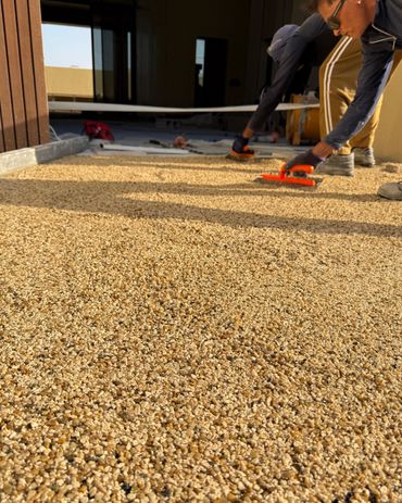 After combining the resin with the selected aggregate, we pour the mixture onto the fully prepared surface and spread it around the desired area. This ensures excellent coverage and exact consistency.
